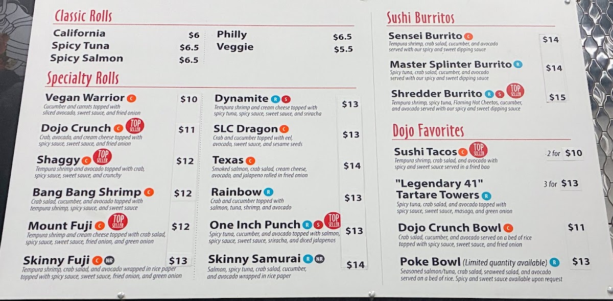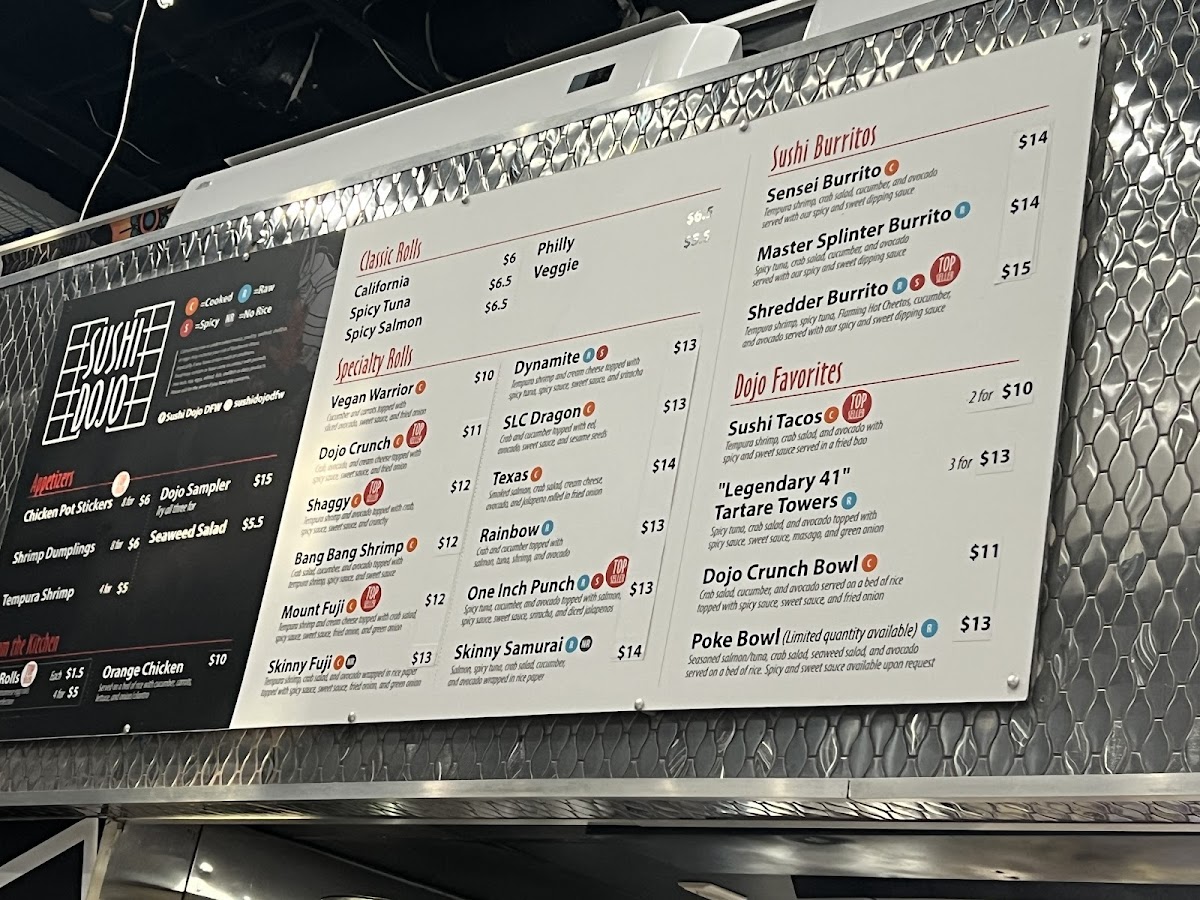 Medium Classic Tray that typically feeds 6-8. 1 Cali 2 Dojo Crunch 1 Shaggy 1 Mount Fuji 1 Rainbow 1 One Inch Punch 6pc Chicken Pot Stickers *Please allow additional prep time for party trays